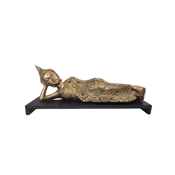 Buda em Resina - Presença Dourada com Base de Serenidade em Preto