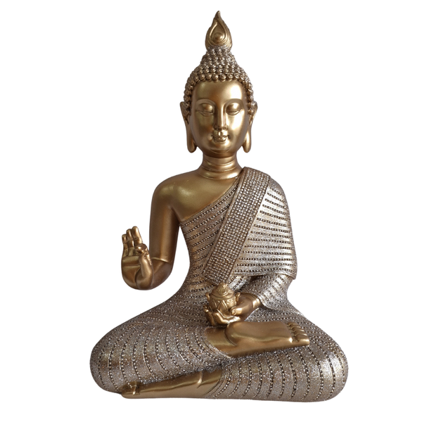 Material Durável: Fabricado em resina resistente, o Buda garante durabilidade e resistência, mantendo sua beleza por muito tempo.