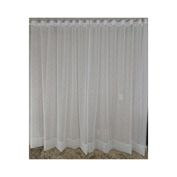 Cortina de Voil Off White com Fio Pérola Ilhós Redondo Branco 28mm - 4,00m L x 2,50m A