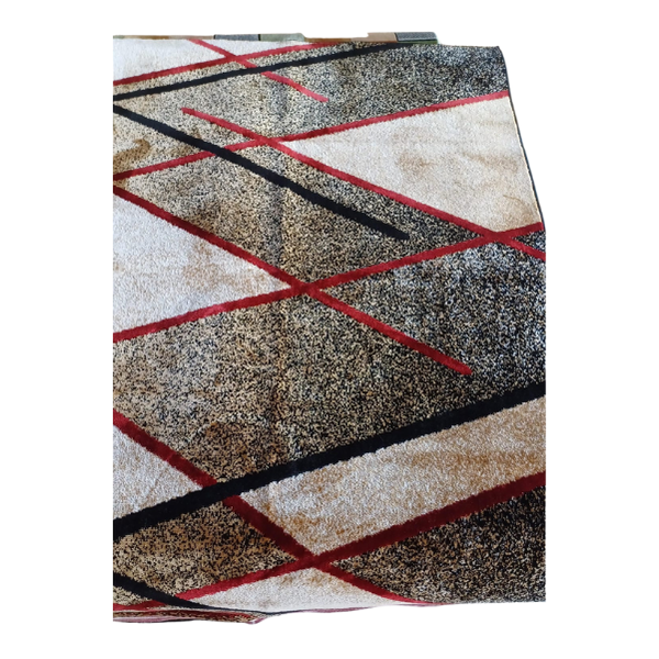 O tapete possui uma combinação de cores neutras e um desenho moderno que se encaixa perfeitamente em diversos estilos de decoração, seja em salas, quartos ou escritórios.